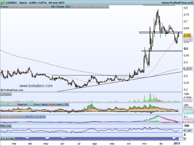 - Coemac. Al perder la zona de 0.6 ha activado una visita a la zona de 0.5. Aunque ha intentado volver a entrar ha sido rechazado. Un cierre por encima de 0.62 anularía el escenario.