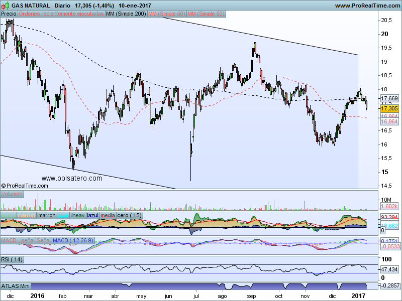 El valor está tratando de aguantar la alcista que se le hizo resistencia anteriormente. En base a eso habría que concederle el beneficio de la duda y lo lógico sería apostar por subidas. Si no fuera porque la subida que vino precedida por una entrada muy importante de volumen por las manos fuertes llevan tiempo saliéndose del valor. ¿Lo bajarán de nuevo?