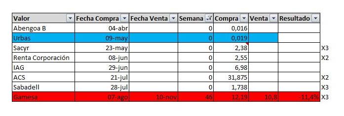 ACS. Lleva una subida importante con una buena tendencia pero esta semana se ha girado. Podría salir de cartera para volver a comprar más barato. Si el mercado no mejor es una opción a tomar.