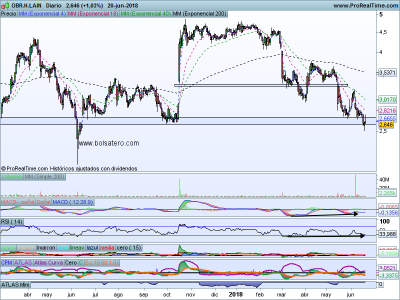 La estrategia en OHL pasaría por comprar en estos precios. El objetivo a buscar estaría en 3 y en 3.5 a más largo plazo. El stop habría que ejecutarlo si perdiera 2.5. La relación Rentabilidad/riesgo permite hacer la operación.
