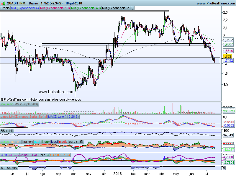 La estrategia en Quabit pasaría por comprar a estos precios. EL objetivo a buscar estaría en el nivel de 1.9 mientras que el stop lo ejecutaríamos si perdiera de manera clara 1.7 a cierre de sesión. La relación Rentabilidad/riesgo permite hacer la operación.