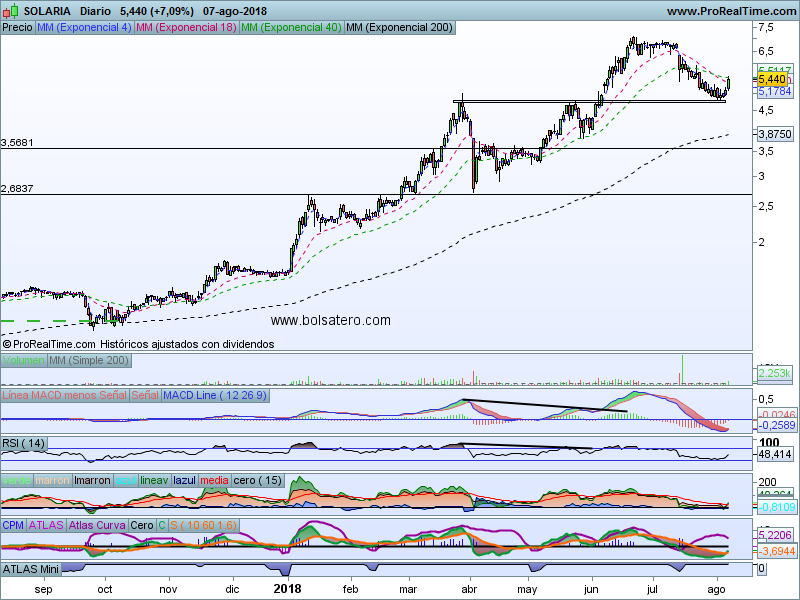 Solaria es un valor que tiene una gran revalorización este año. Eso ha hecho que tuviese una importante sobrecompra que ha terminado corrigiendo. La corrección ha llevado al valor a probar la última resistencia superada que ha ejercido de soporte por lo que se pueda plantear una estrategia alcista en el valor.