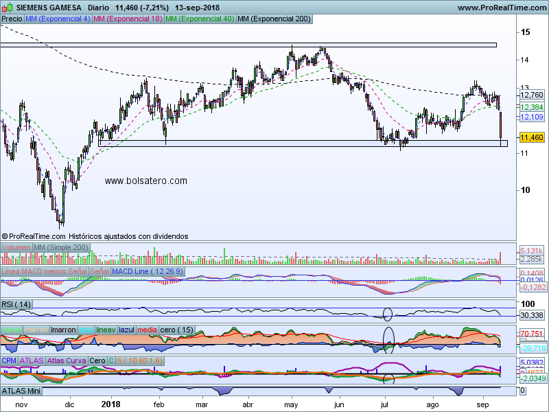 Hoy nos hemos despertado con la mala recomendación de Goldman Sachs sobre la parte de negocio que tiene Siemens Gamesa en India. Esa parte del negocio supone aproximadamente el 30 de su facturación por lo que pesa bastante. Si según parece no van a cumplirse los futuros objetivos el negocio total de la empresa se resentirá bastante. Eso ha hecho que el valor bajara con mucha fuerza hoy pero no ha perdido niveles importantes. Podría producirse un rebote y podría aprovecharse.