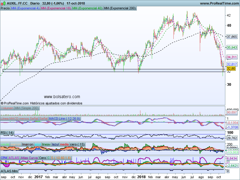 La estrategia en CAF pasaría por comprar a estos precios. El objetivo que habría que buscar estaría en la zona de 35 y posteriormente en 37. El stop deberíamos ejecutarlo si perdiera 31 de manera clara. La relación Rentabilidad/riesgo permite hacer la operación.