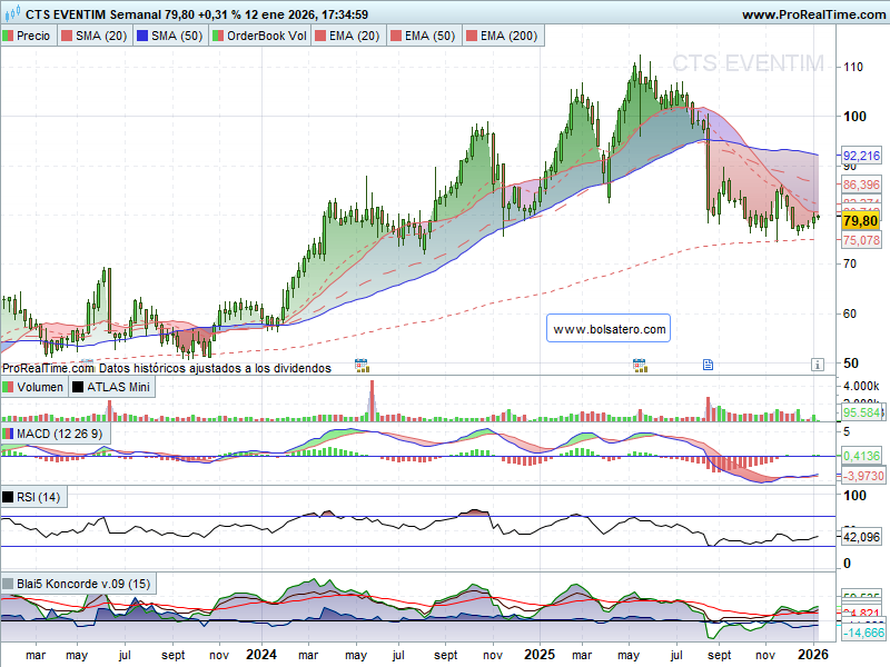 CTS Eventin es un gigante del sector del ocio al que no le sentaron demasiado bien los resultados de mitad de año que hicieron que perdiera su gran tendencia alcista, aunque los del tercer trimestre tampoco hicieron milagros mejorando algo. Eso hizo que el valor buscara refugio en una zona que fue resistencia en su momento y donde su media de largo plazo pasa para sujetarla. De momento ha estado haciendo suelo ahí y podría empezar un rebote que podría aprovecharse.